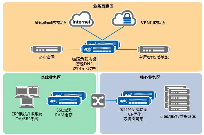____在業(yè)務互聯區,A10 Networks解決方案幫助物(wù)流企業(yè)實現智能(néng)鏈路(lù)負載均衡、智能(néng)DNS以及增強防禦來自互聯網DDoS攻擊能(néng)力。