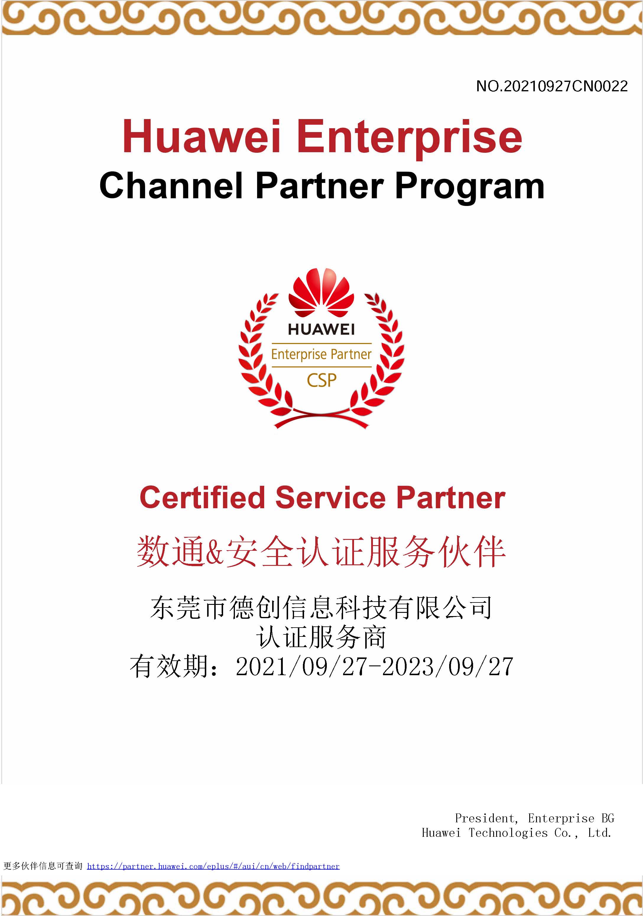 喜訊!德創科技榮獲華爲2021數通&安全認證服務合作夥伴證書(shū)