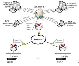 流媒體轉發服務器(qì)良好的(de)解決了,當多個(gè)客戶端需要同時查看某監控點的(de)相(xiàng)同畫面時,造成在一條通訊網絡線路(lù)上(shàng)數據擁堵。流媒體服務器(qì)提供了視音(yīn)頻流的(de)轉發功能(néng),當有(yǒu)多個(gè)局域網客戶端需要同時訪問同一遠程畫面時,可(kě)以通過流媒體服務器(qì)進行(xíng)轉發,在轉發服務與前端視頻通道之間隻占用(yòng)一個(gè)通道帶寬的(de)網絡資源,再由轉發服務器(qì)将數據分(fēn)發給多個(gè)客戶端。